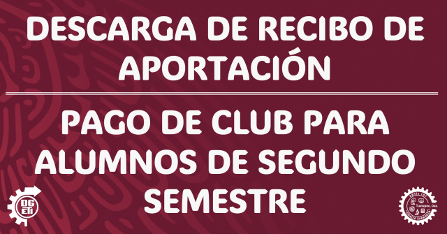 DESCARGA DE RECIBO DE APORTACIÓN - PAGO DE CLUB PARA ALUMNOS DE SEGUNDO SEMESTRE
